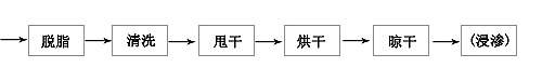 浸滲工藝:浸滲——甩干——清洗罐Ⅰ——清洗Ⅱ——熱水固化——烘干